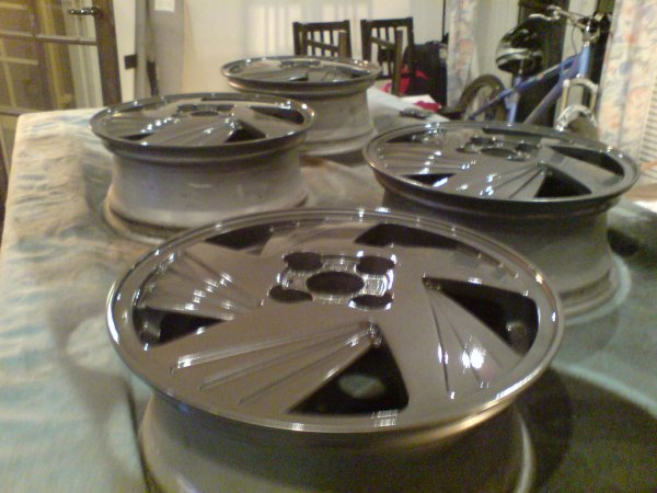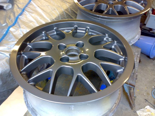 Powdercoat on wheels in my experience is pretty shite, they never seem to look really shiny or glossy, plus hot brake material sticks in to them with it being a plastic coating and is then never able to be removed.
