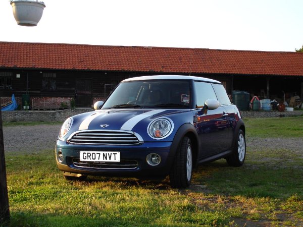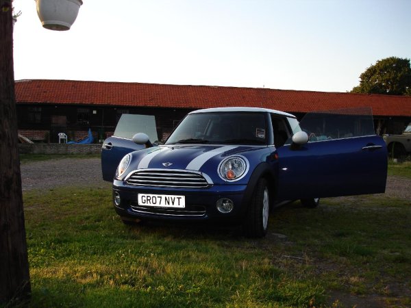 Well, this is the car that kinda helped with the splitting on the red sleeper. Drove it back from the city today and its quite nice, this is quite a basic Mini Cooper, only extras are the white bits, pepper pack (aircon and trims) and darkened rear glass which is quite a treat. I'm already getting nods from other Mini owners, but this could possibly be a double take because its a bloke driving it .